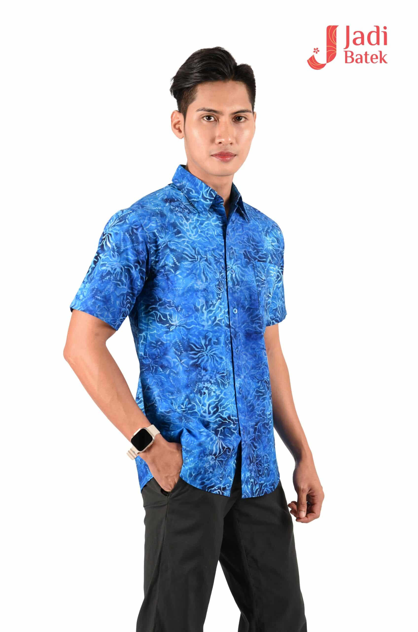 This particular type of batik is the stamped batik or block-printed batik. The canting will be replaced by a copper block or sometimes a wooden stamp with artistically patterned bottom. The block is dipped into wax and printed onto the fabric, which is then dip-dyed. Then the wax will be removed and batik with single color is produced. To create multi-colors and more complex block-printed batik, waxing with different blocks and de-waxing will be done many times. The premium choice as a gift or souvenir for men such as husbands, father, brothers, uncle, bosses. The 100% cotton material is a perfect combination as a Batik man shirt for your wardrobe as it is long lasting despite daily usage and is easy to wash.