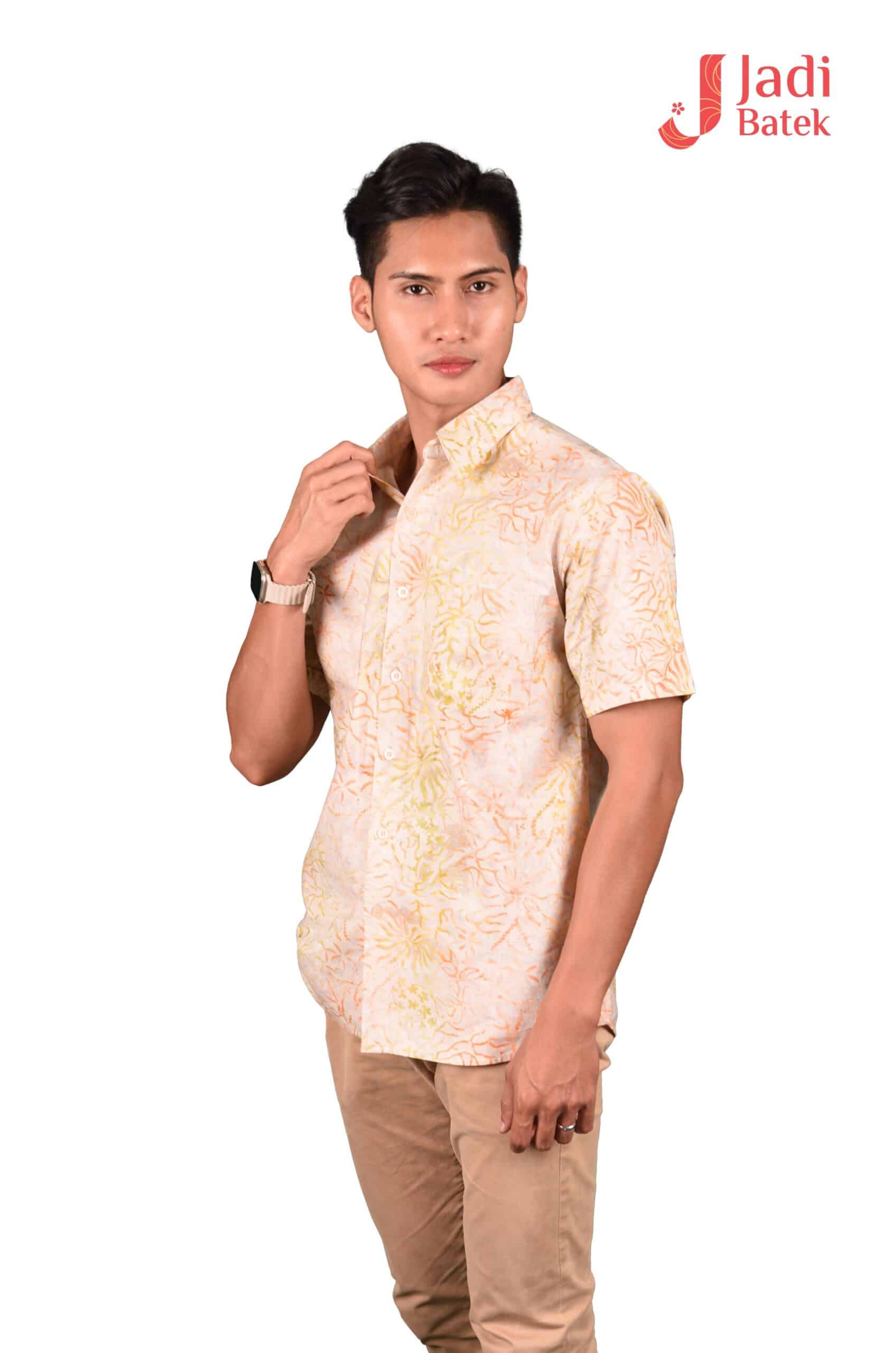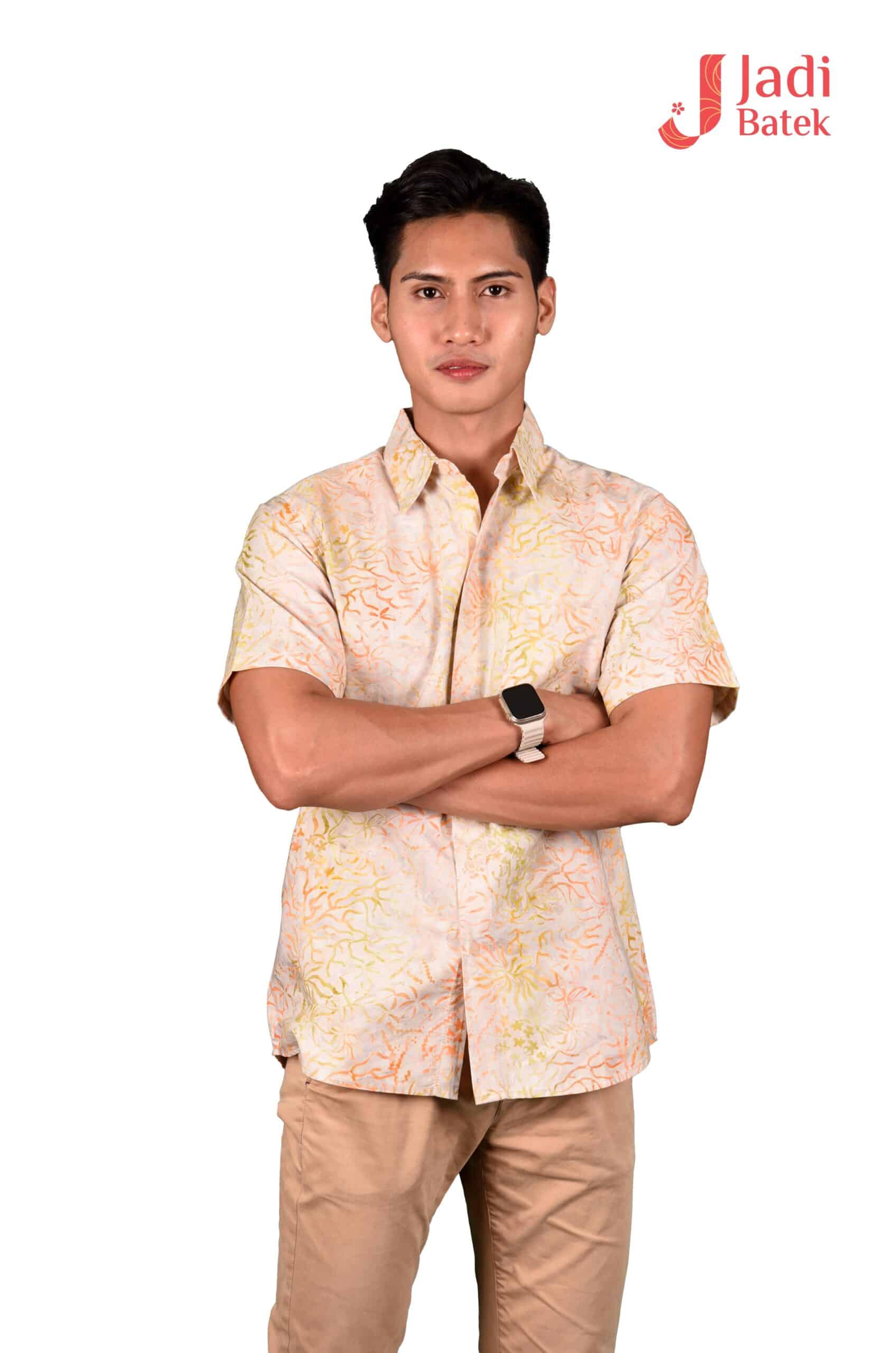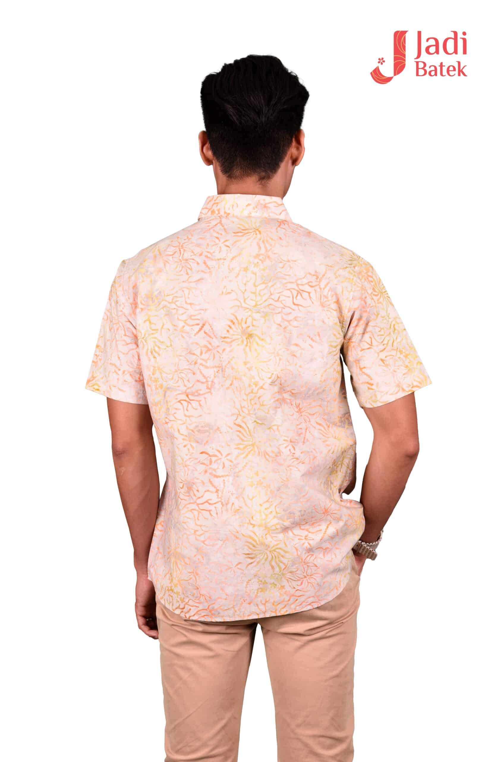 This particular type of batik is the stamped batik or block-printed batik. The canting will be replaced by a copper block or sometimes a wooden stamp with artistically patterned bottom. The block is dipped into wax and printed onto the fabric, which is then dip-dyed. Then the wax will be removed and batik with single color is produced. To create multi-colors and more complex block-printed batik, waxing with different blocks and de-waxing will be done many times. The premium choice as a gift or souvenir for men such as husbands, father, brothers, uncle, bosses.  The 100% cotton material is a perfect combination as a Batik man shirt for your wardrobe as it is  long lasting despite daily usage and is easy to wash.