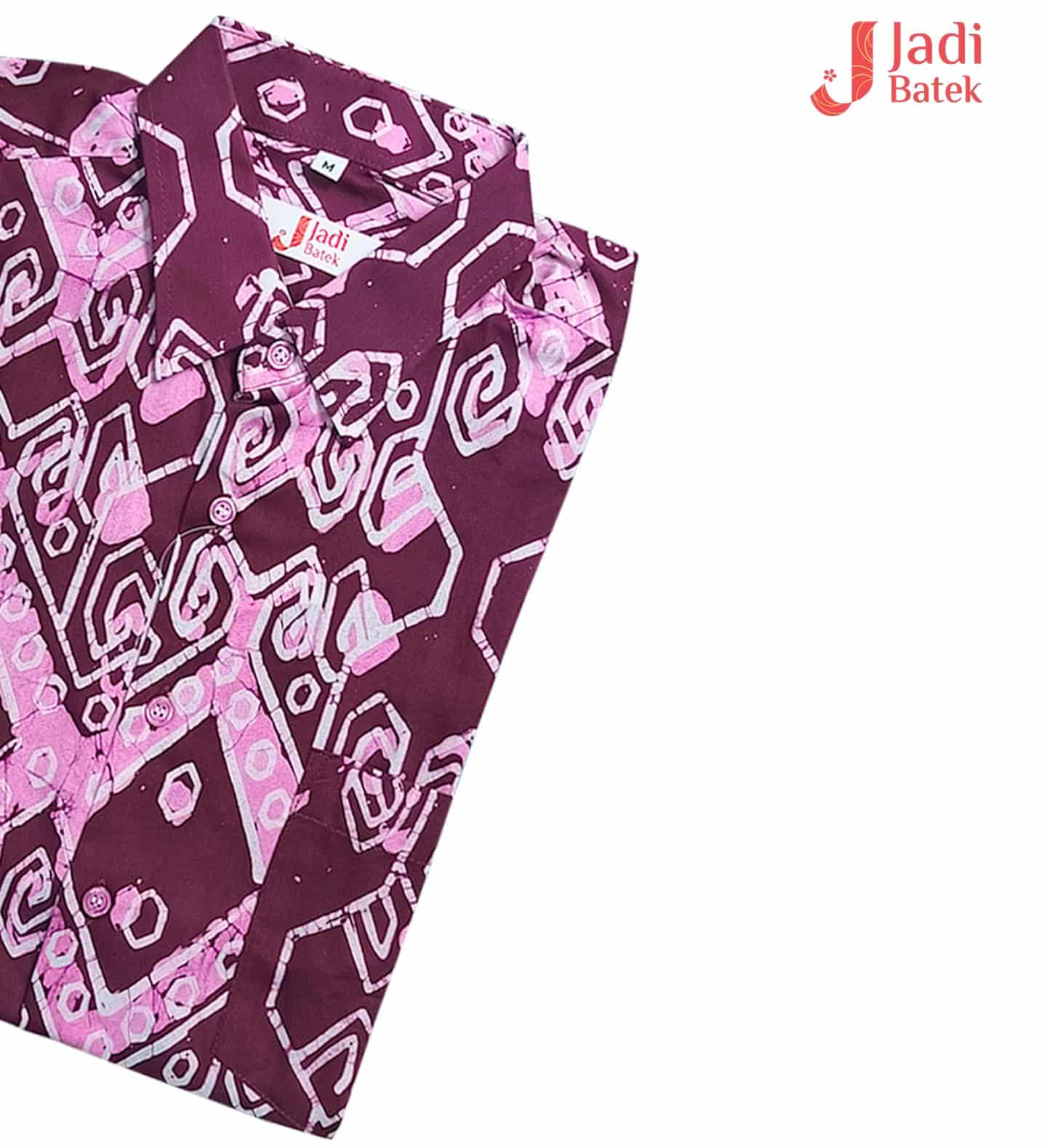 This particular type of batik is the stamped batik or block-printed batik. The canting will be replaced by a copper block or sometimes a wooden stamp with artistically patterned bottom. The block is dipped into wax and printed onto the fabric, which is then dip-dyed. Then the wax will be removed and batik with single color is produced. To create multi-colors and more complex block-printed batik, waxing with different blocks and de-waxing will be done many times. The premium choice as a gift or souvenir for men such as husbands, father, brothers, uncle, bosses.  The 100% cotton material is a perfect combination as a Batik man shirt for your wardrobe as it is  long lasting despite daily usage and is easy to wash.