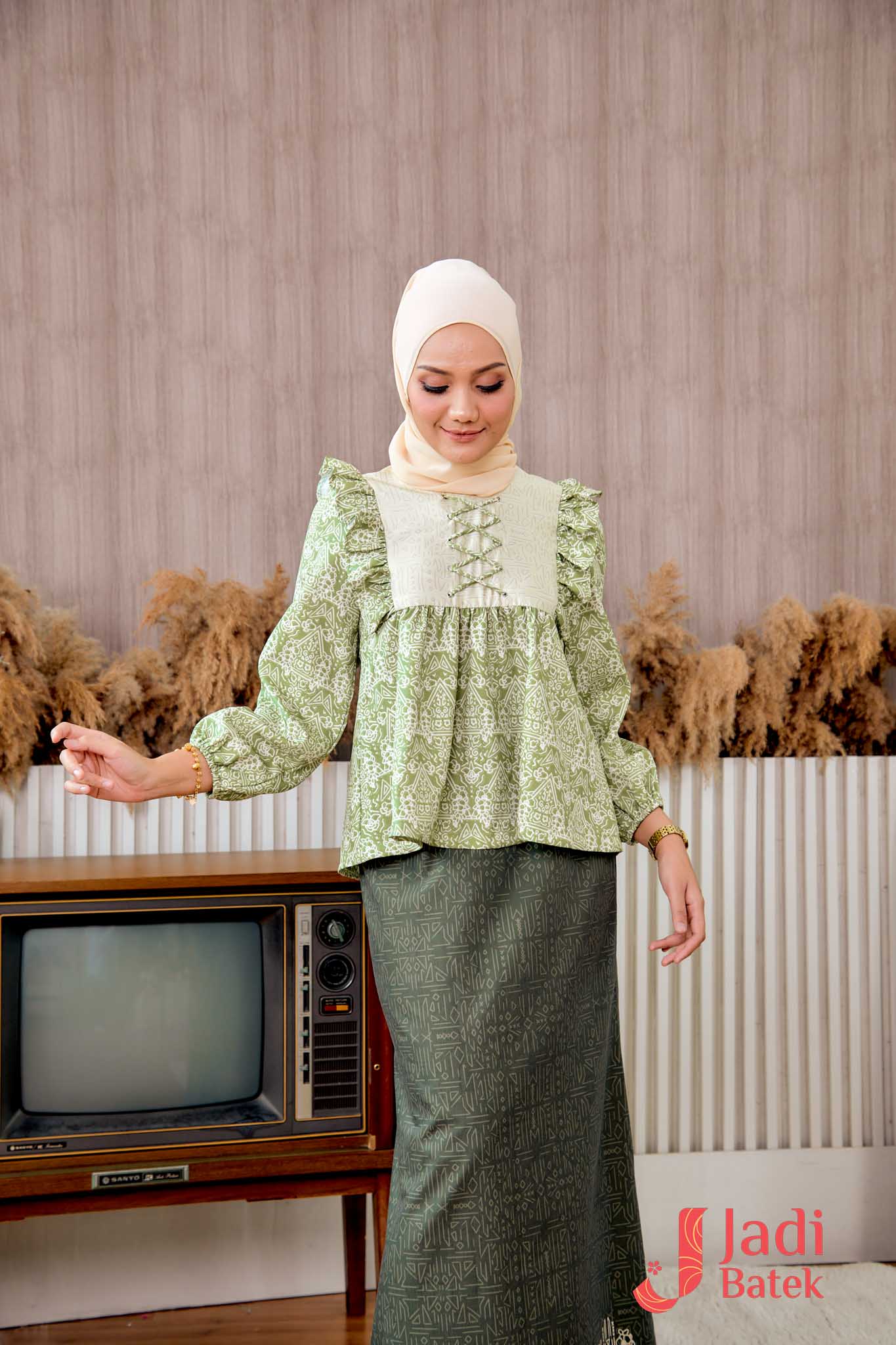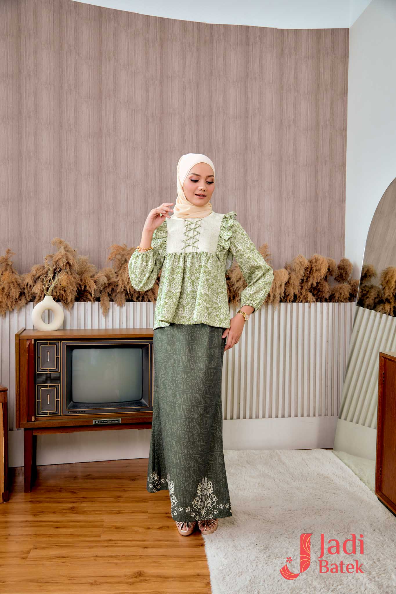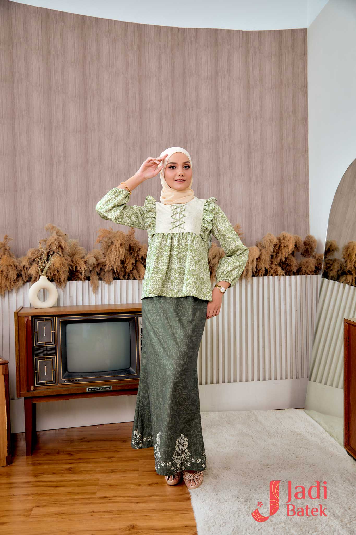 For those who love a perfectly coordinated outfit, this Ruffle Blouse Set is the ultimate choice. The combination of the flowy, ruffled blouse and the classic batik skirt creates an effortlessly elegant look.