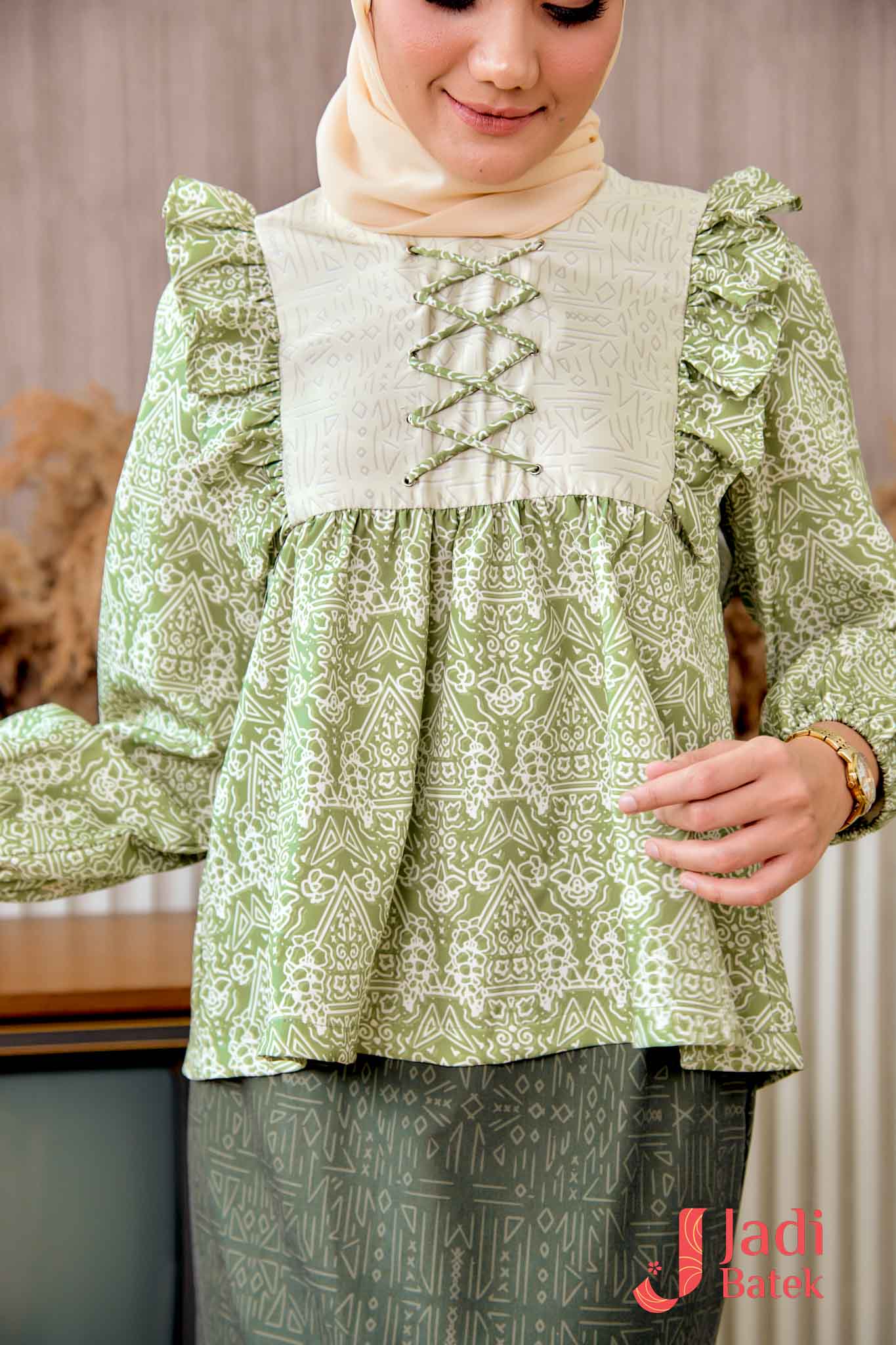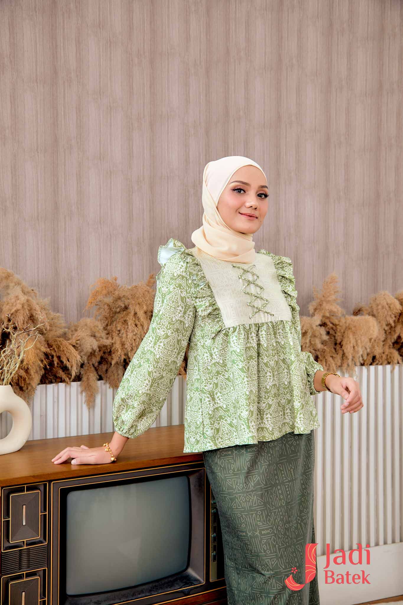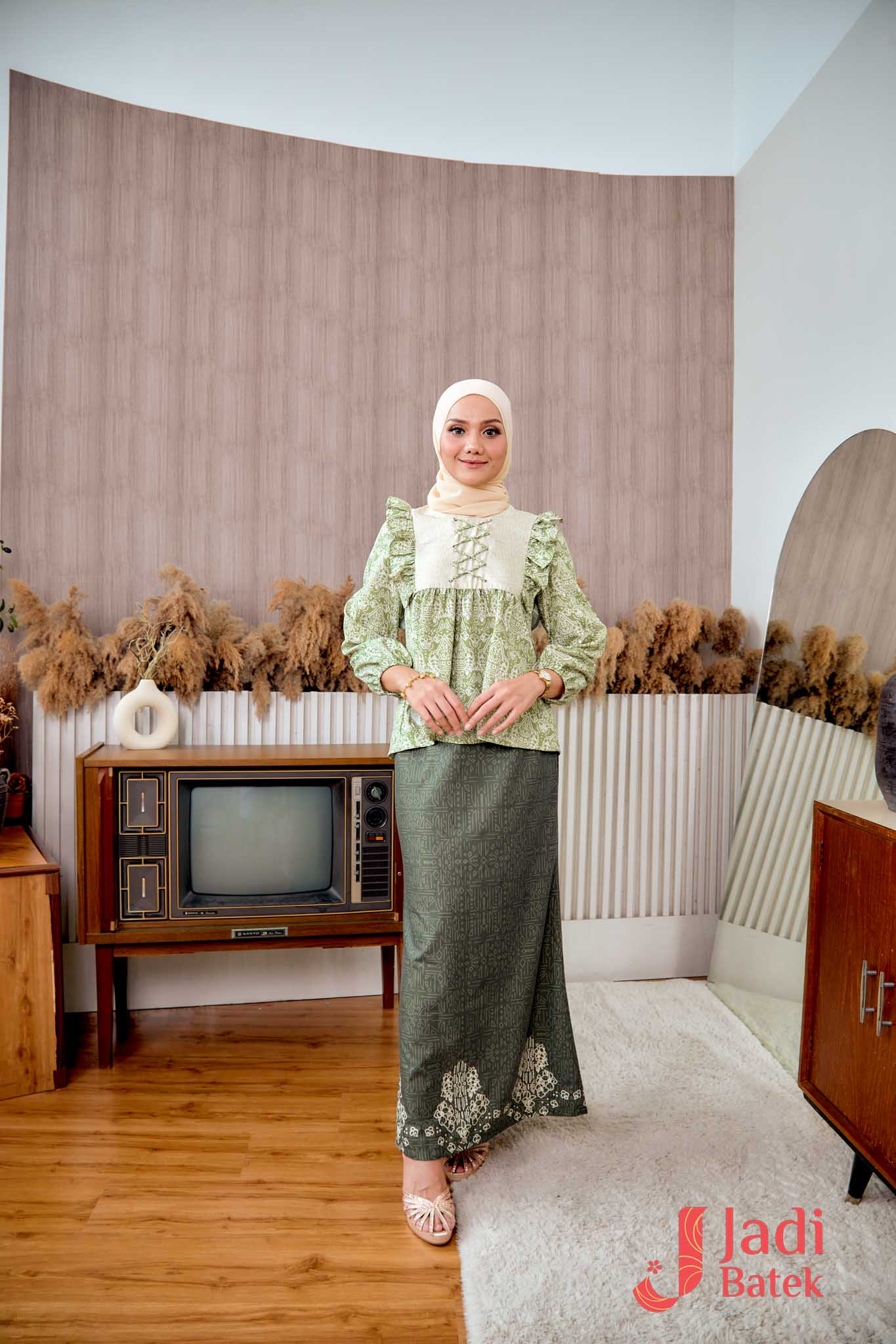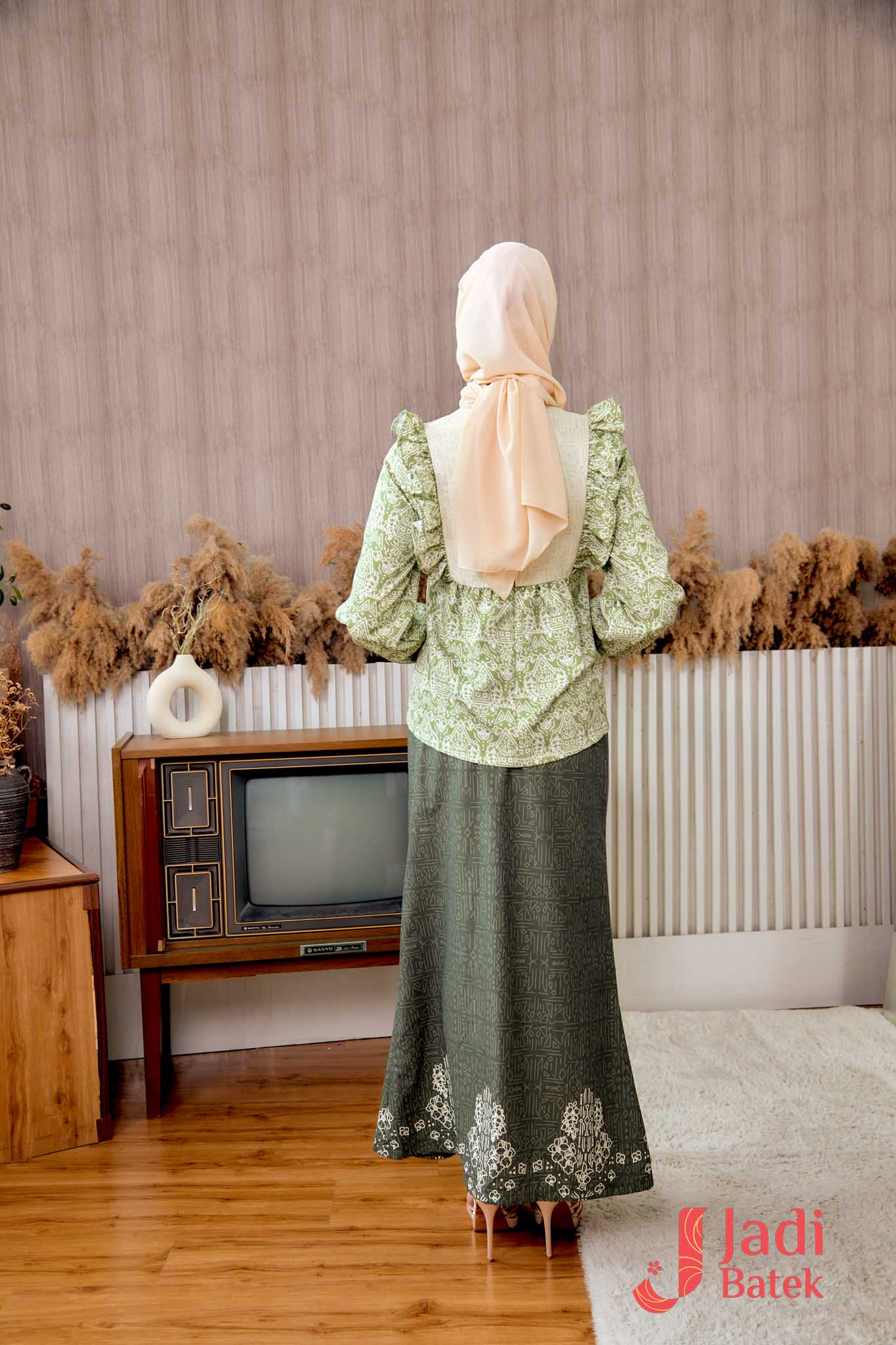 For those who love a perfectly coordinated outfit, this Ruffle Blouse Set is the ultimate choice. The combination of the flowy, ruffled blouse and the classic batik skirt creates an effortlessly elegant look.