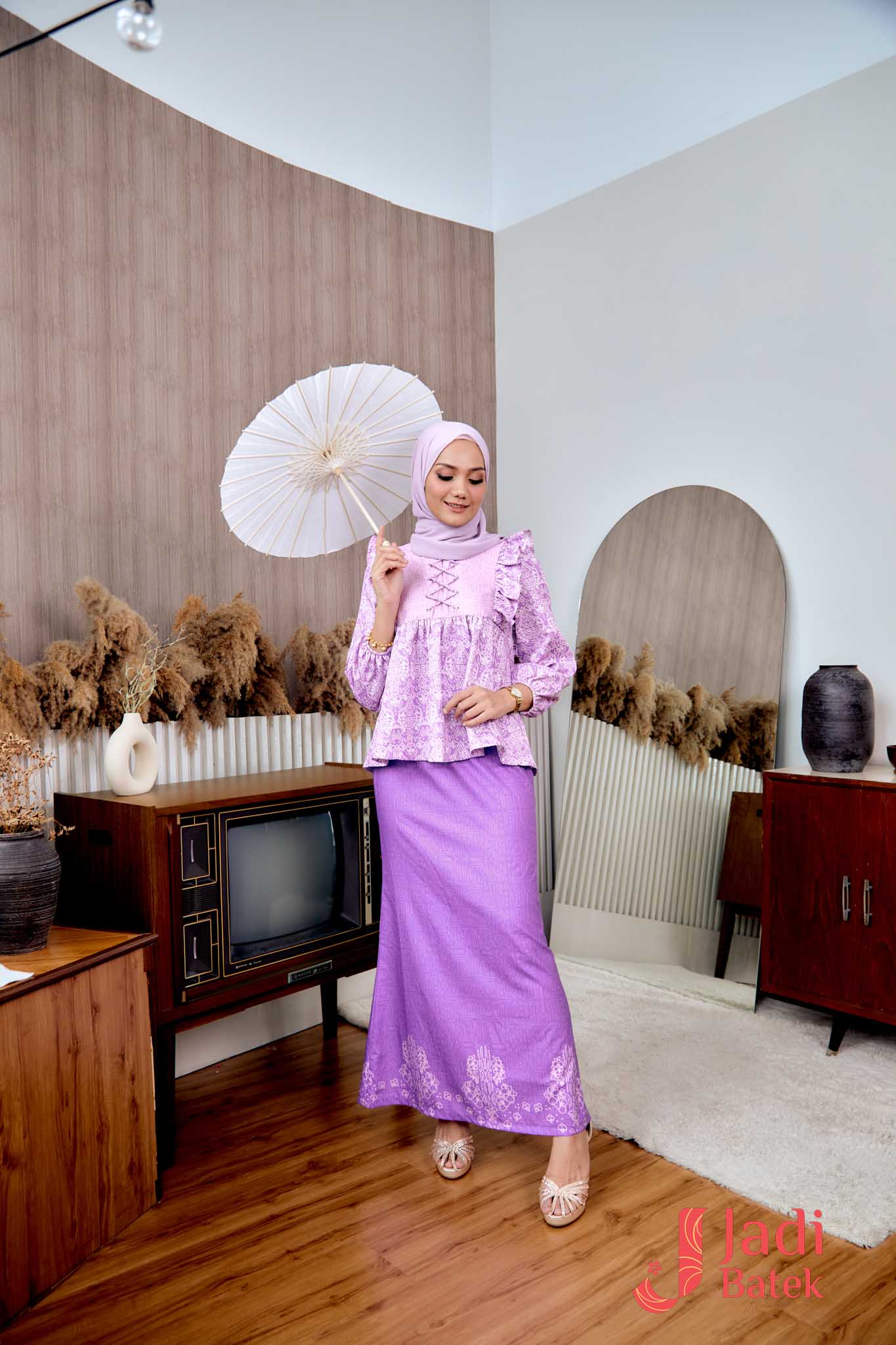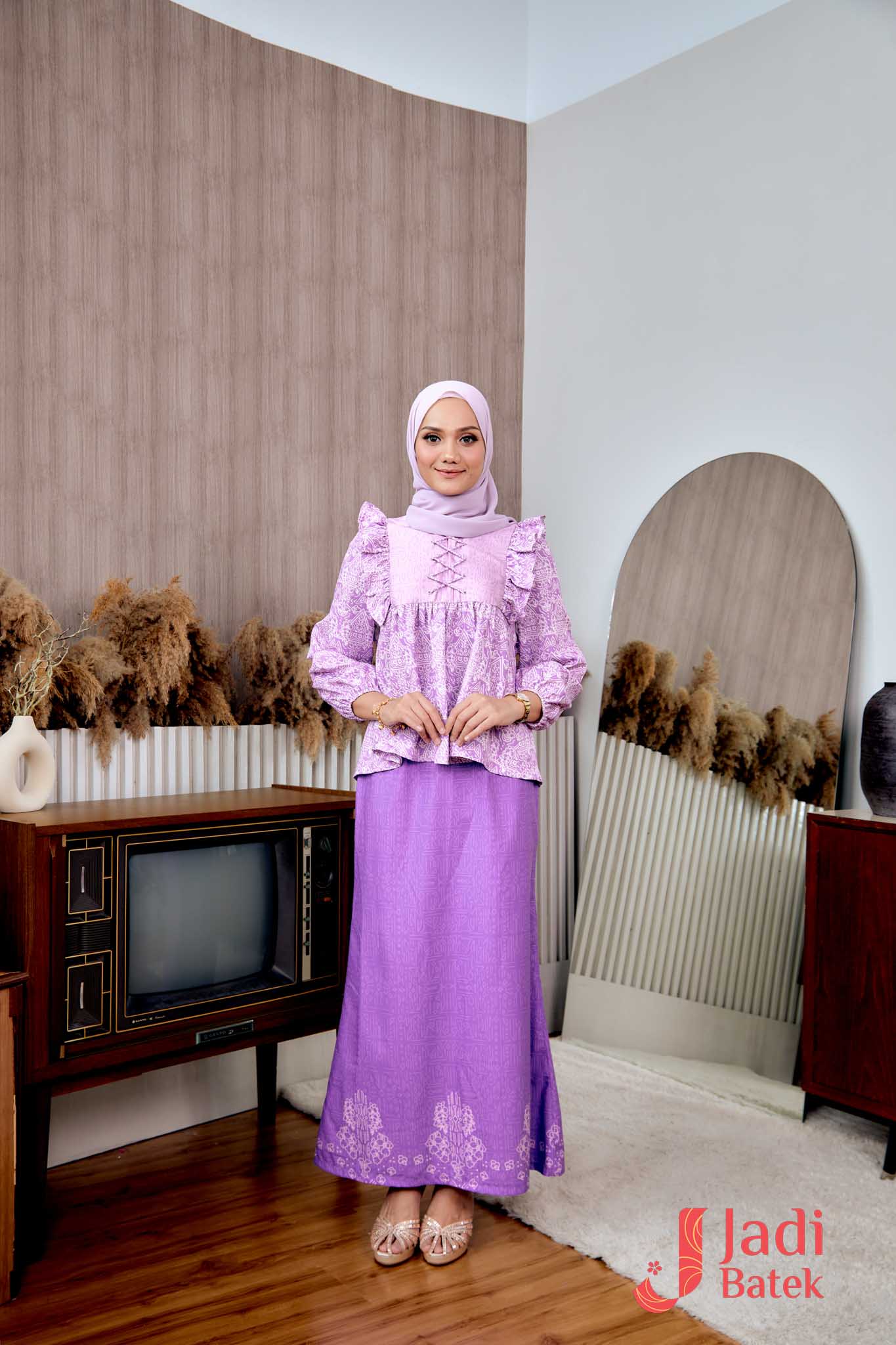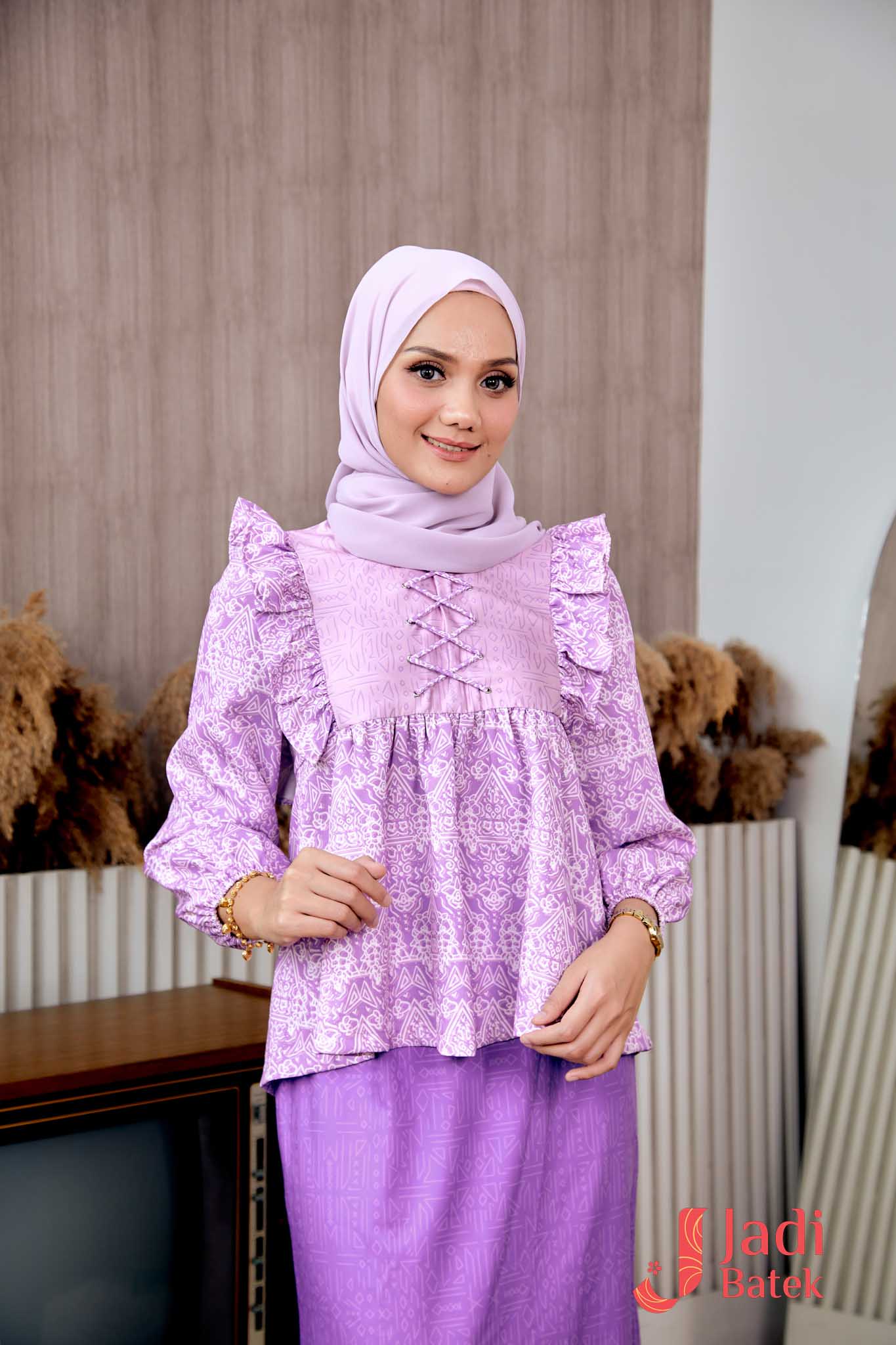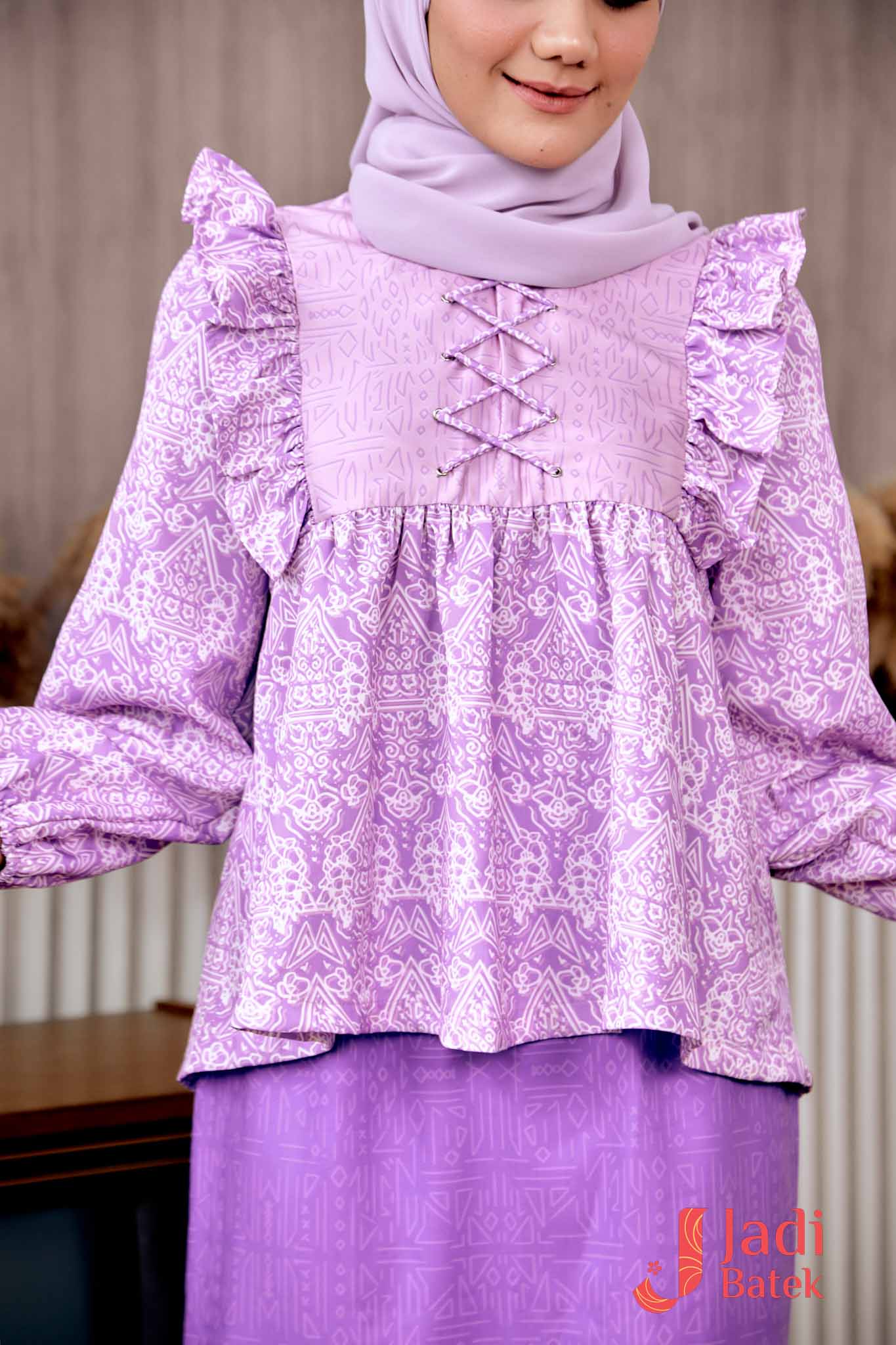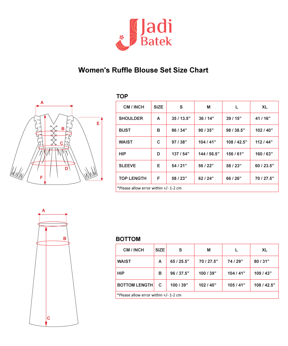 For those who love a perfectly coordinated outfit, this Ruffle Blouse Set is the ultimate choice. The combination of the flowy, ruffled blouse and the classic batik skirt creates an effortlessly elegant look.