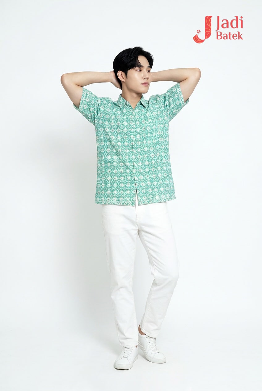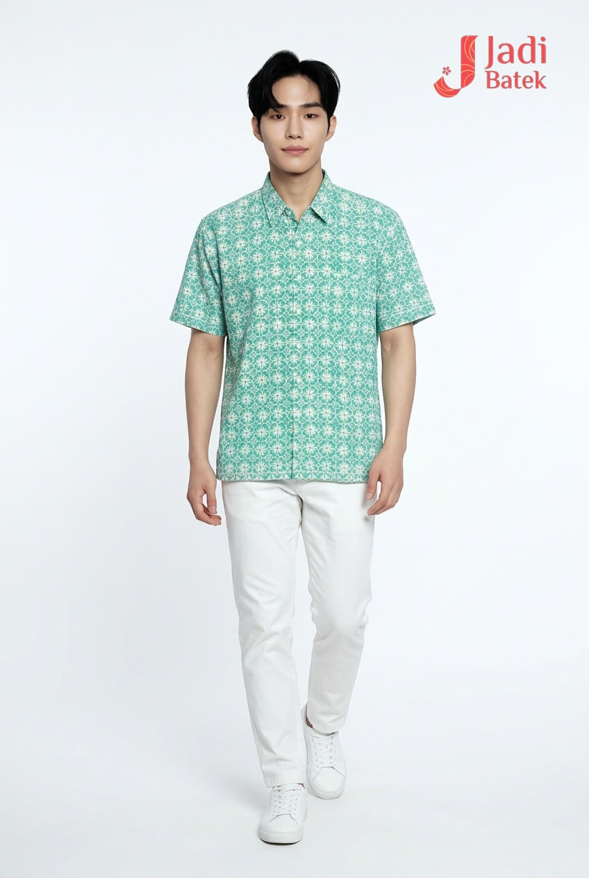 Experience a modern breath of air with our Mint Blossom Batik Shirt. Unlike darker traditional prints, this piece focuses on high-contrast clarity. The intricate, interlocking floral stars are meticulously hand-stamped, creating a uniform yet artisanal texture that feels both organized and organic.