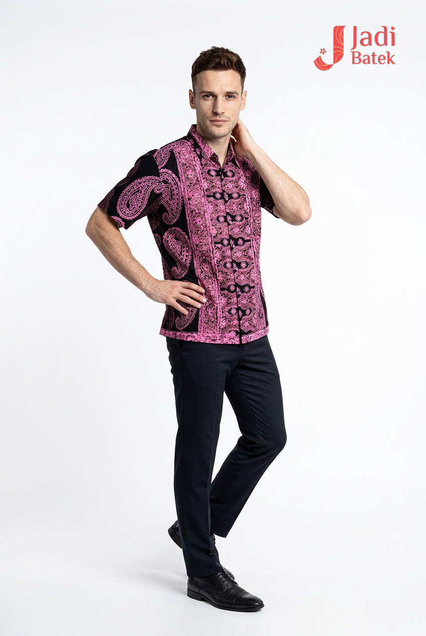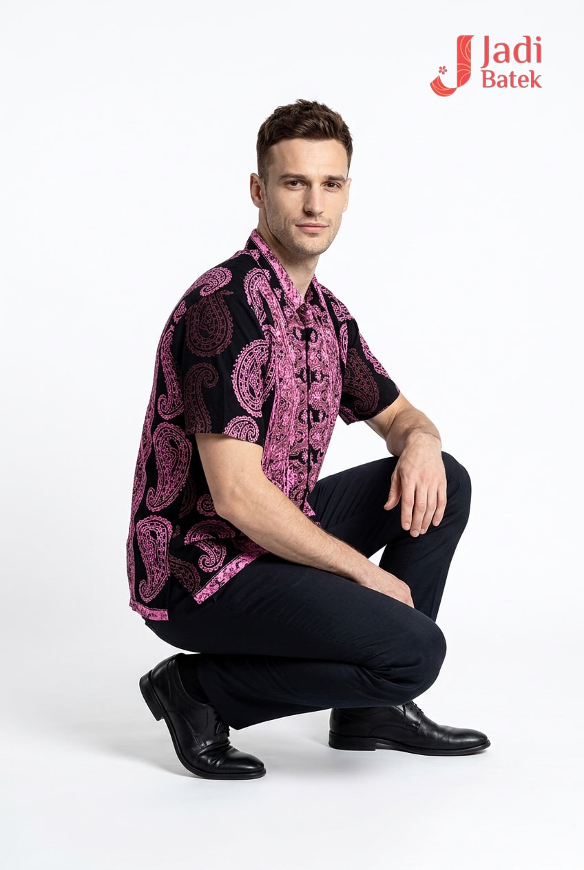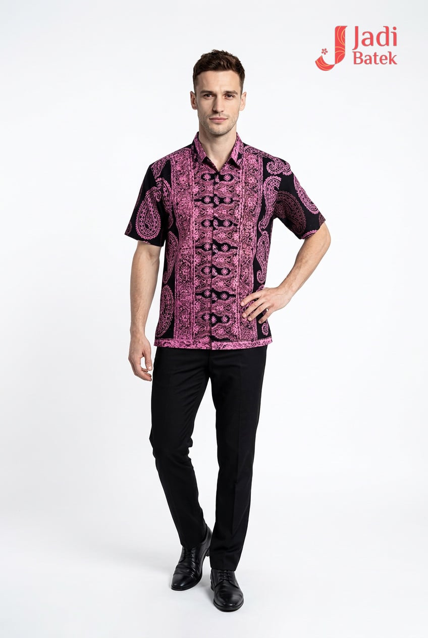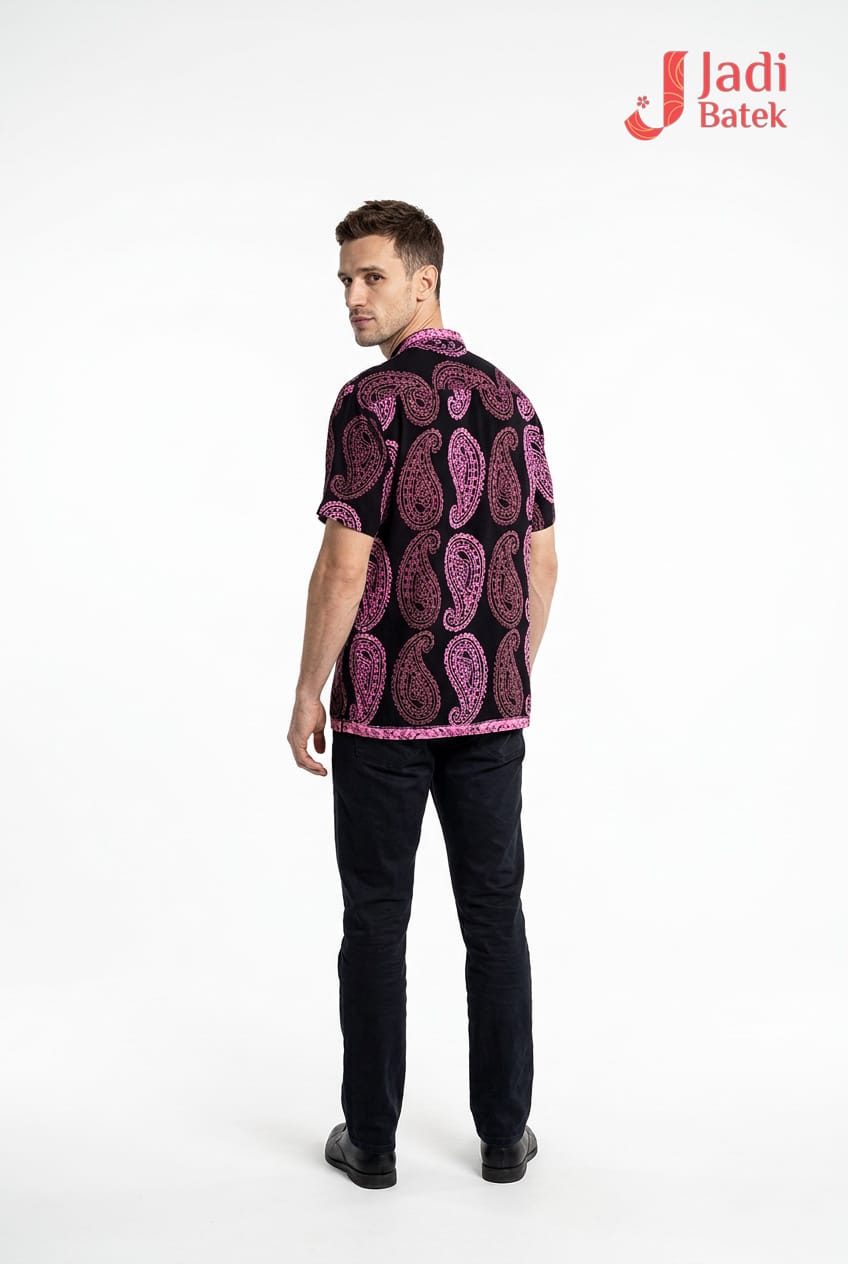 Elevate your evening wardrobe with our Midnight Crimson Paisley Batik Shirt. This piece is designed for those who appreciate the intersection of traditional batik artistry and high-fashion drama. The layout features a vertical “tumpal” inspired center panel that elongates the torso, flanked by hand-stamped paisley designs that add a sense of fluid movement.
