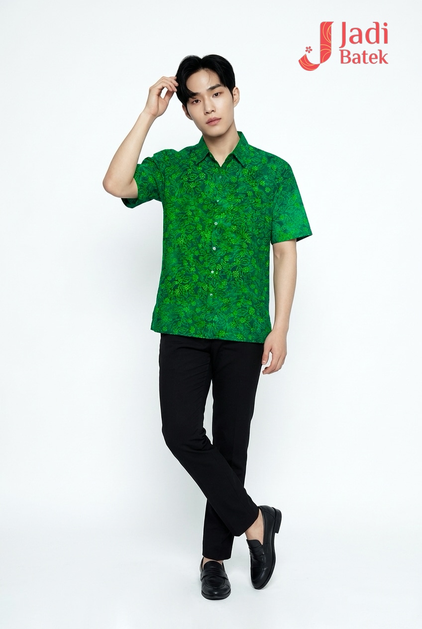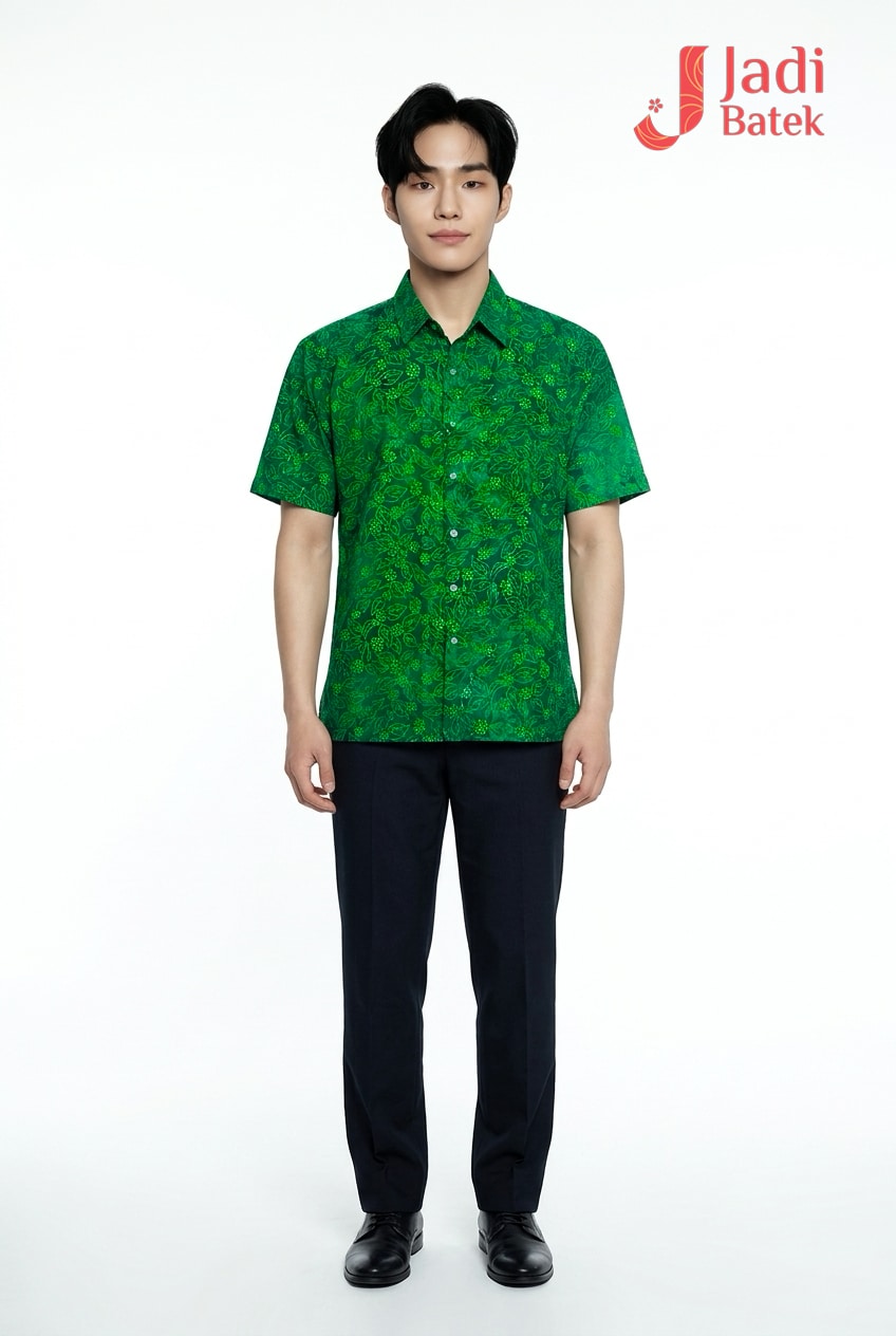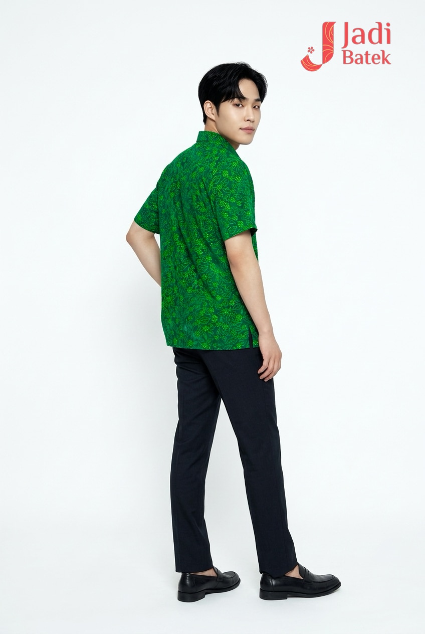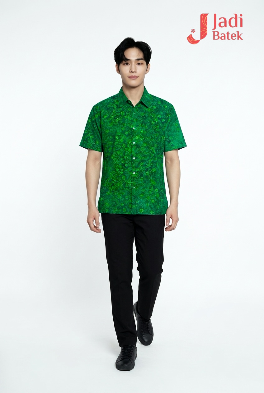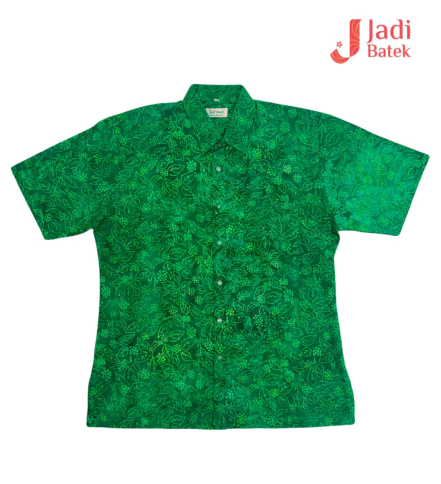 Experience the lush beauty of the tropics with our Emerald Forest Batik Shirt. This design moves away from rigid geometry, instead celebrating organic movement through its intricate, hand-drawn foliage pattern. The “tone-on-tone” green palette creates a subtle depth, making the intricate outlines of leaves and berries stand out with artistic clarity.