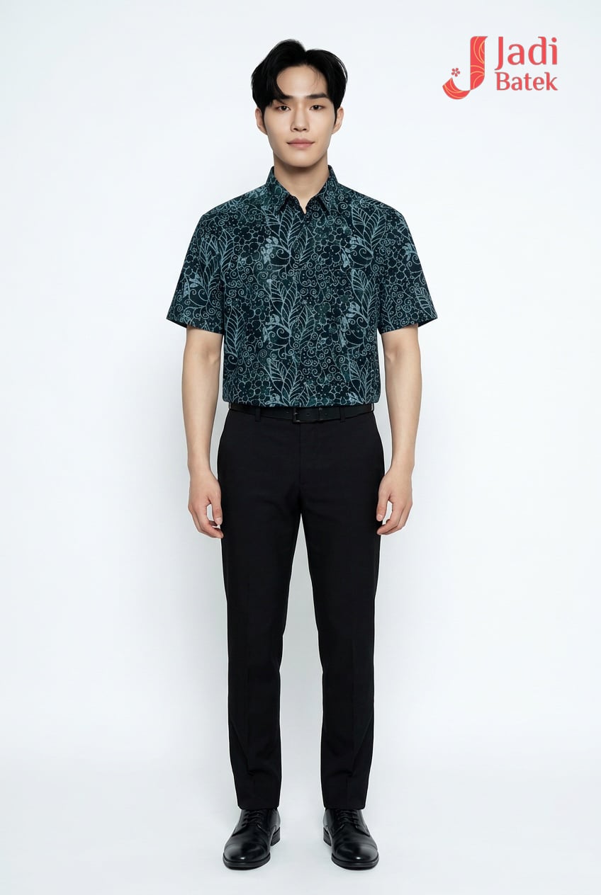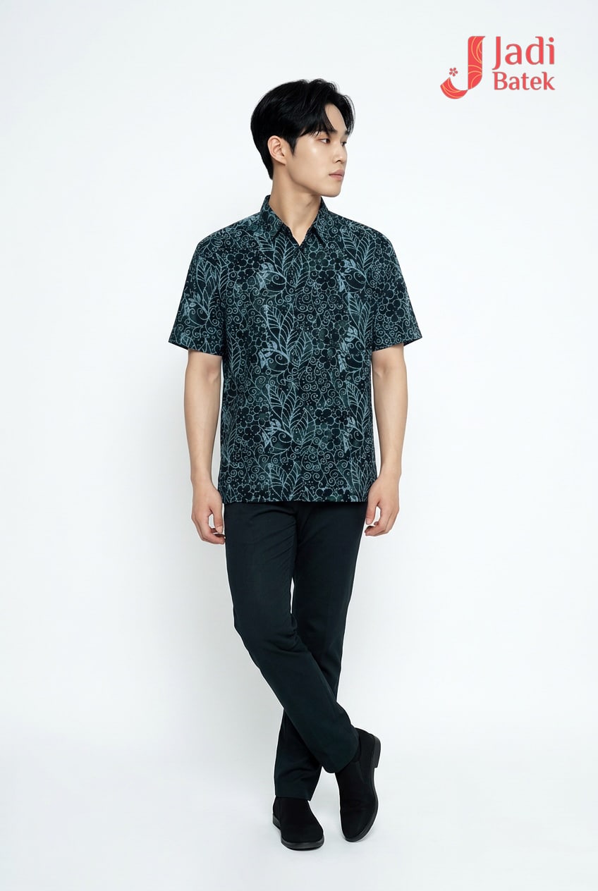 Step into sophistication with the deep, layered complexity of our Midnight Flora Hand-Block Batik Shirt. Expertly hand-stamped using traditional Malaysian wax-block techniques, this shirt features a mesmerizing, intricate pattern of stylized leaves and floral scrolls. The color palette—deep midnight navy layered with subtle dark forest green and a contrasting cool grey-blue—creates a rich, textual depth that makes it a true standout piece.
