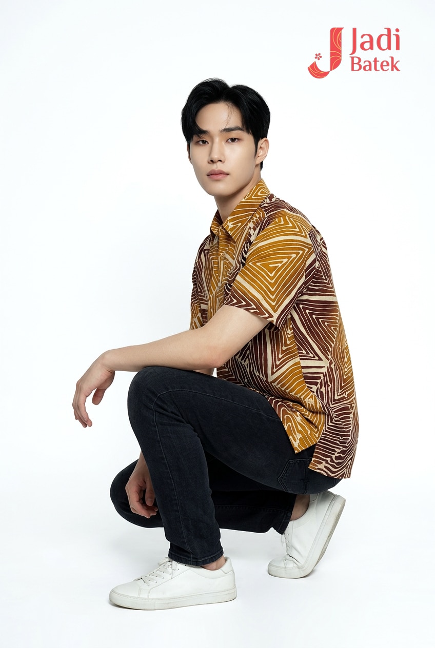 Hand-Drawn Men’s Batik Shirt | Earthy Amber & Mocha