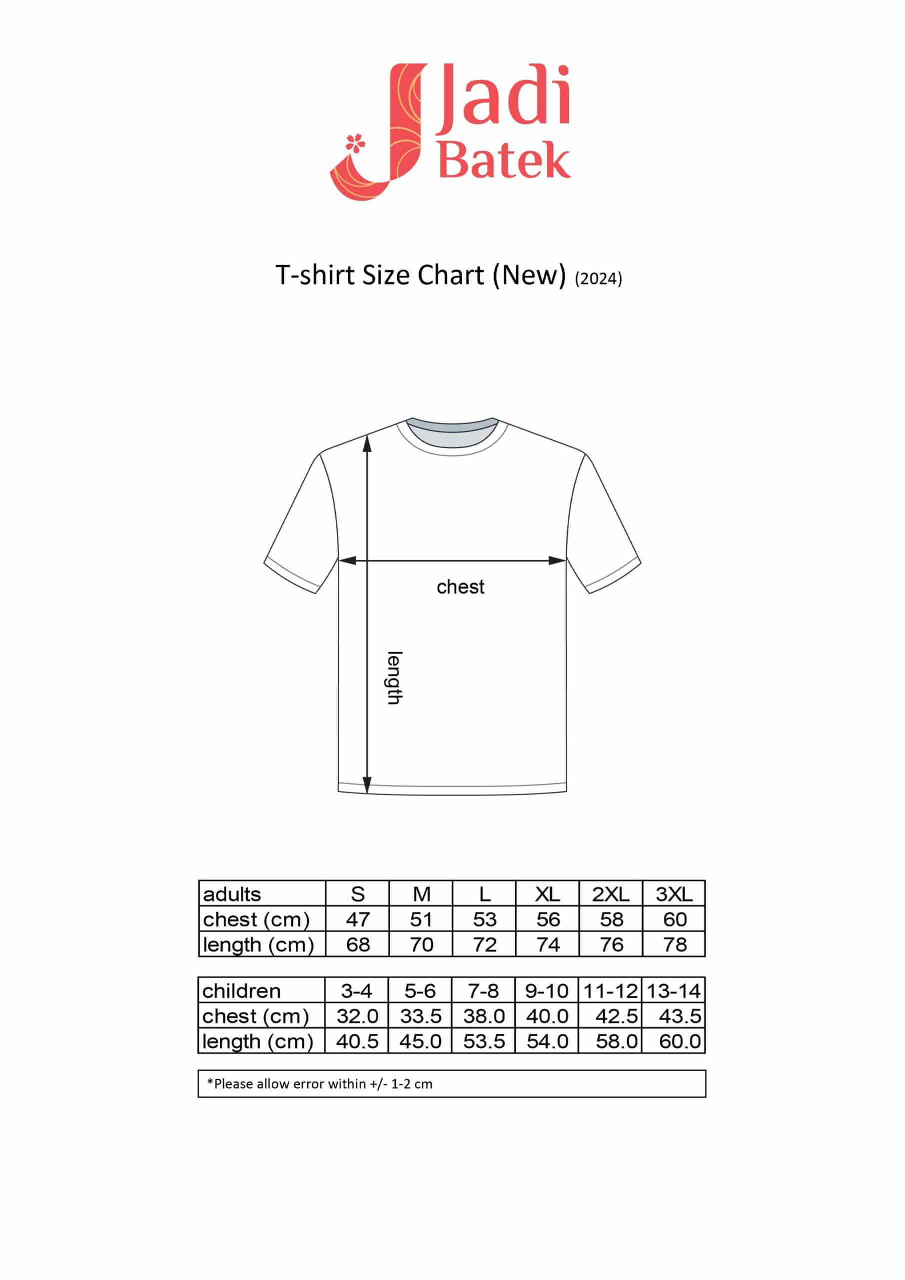 Please refer to the size chart below before selecting your T-shirt size. Measurements are based on garment width and length.