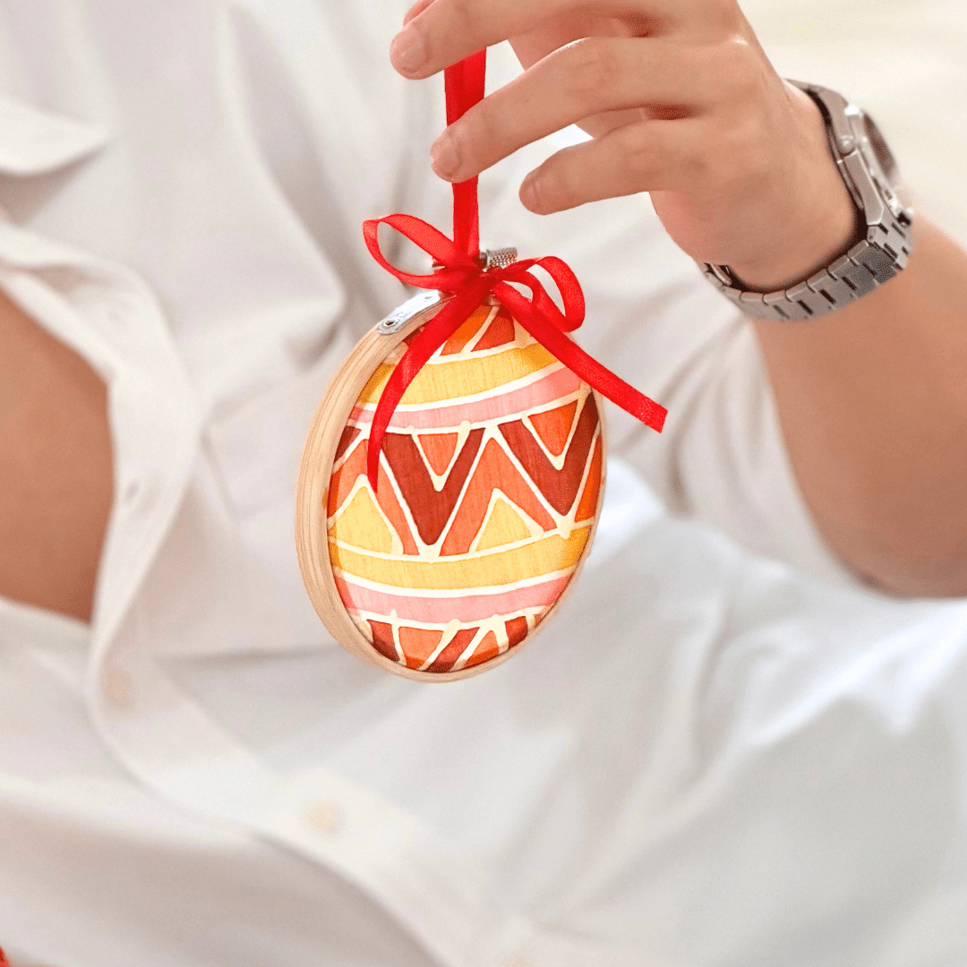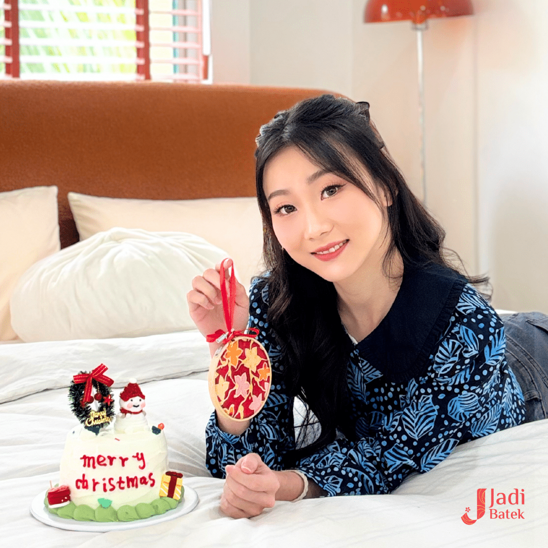 - 4 limited edition Christmas Ornament Batik Wax Design with wooden hoop (random design)