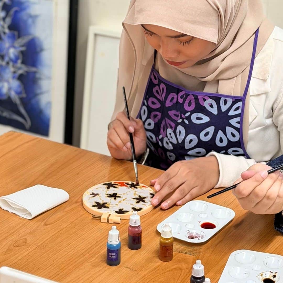 Enjoy a quick and beginner-friendly batik colouring activity at Jadi Batek Gallery. Colour a pre-waxed batik design using traditional dyes — no drawing or waxing needed. Just choose your colours and start painting with guidance from our team.